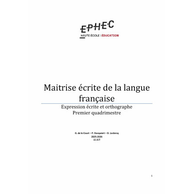 (ps005) 1S103- Français - littérature et linguistique (de le COURT, LECLERCQ, VAN CANGH) - version 25-26